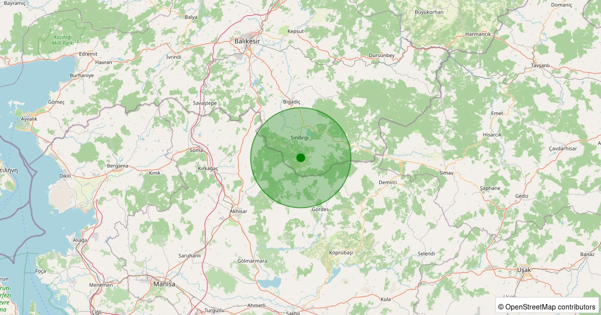 Son 7 gün içinde Sındırgı - Aktaş noktasından 100 km yarıçap içerisinde meydana gelen diğer depremler:
