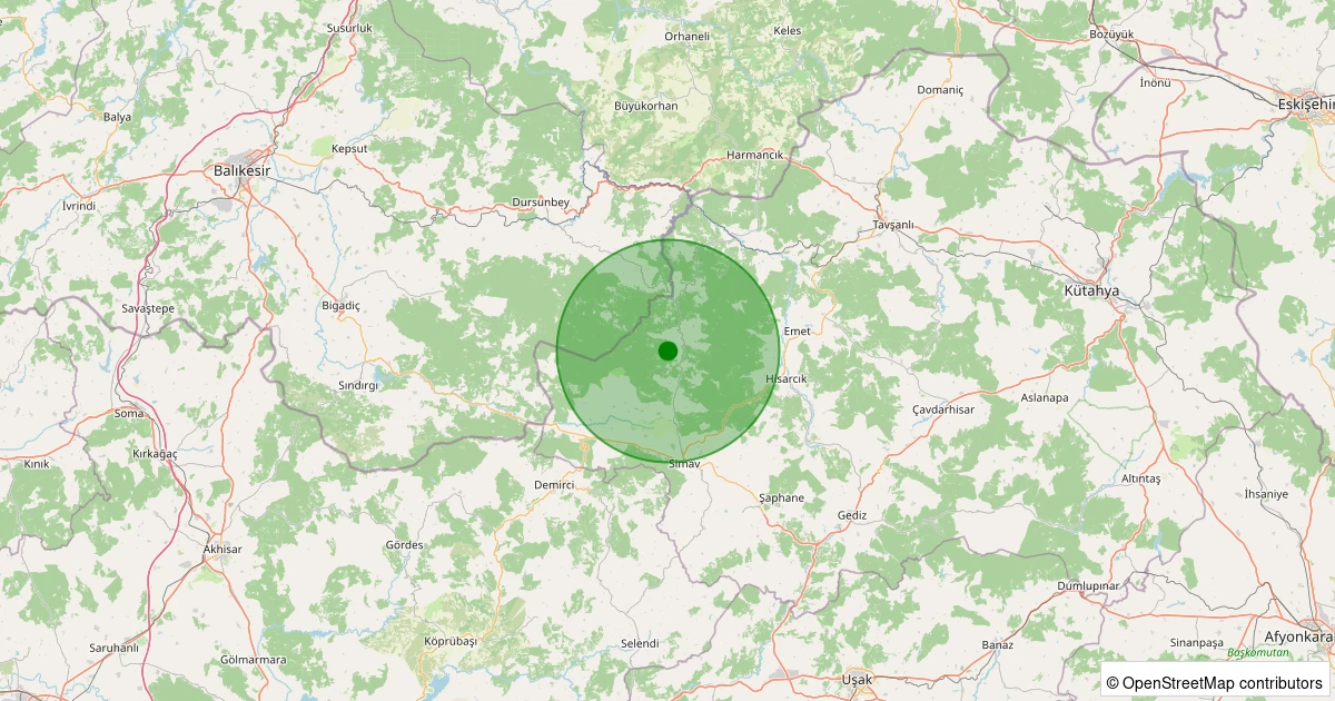 Son 7 gün içinde Simav - Ortacı Köyü noktasından 100 km yarıçap içerisinde meydana gelen diğer depremler: