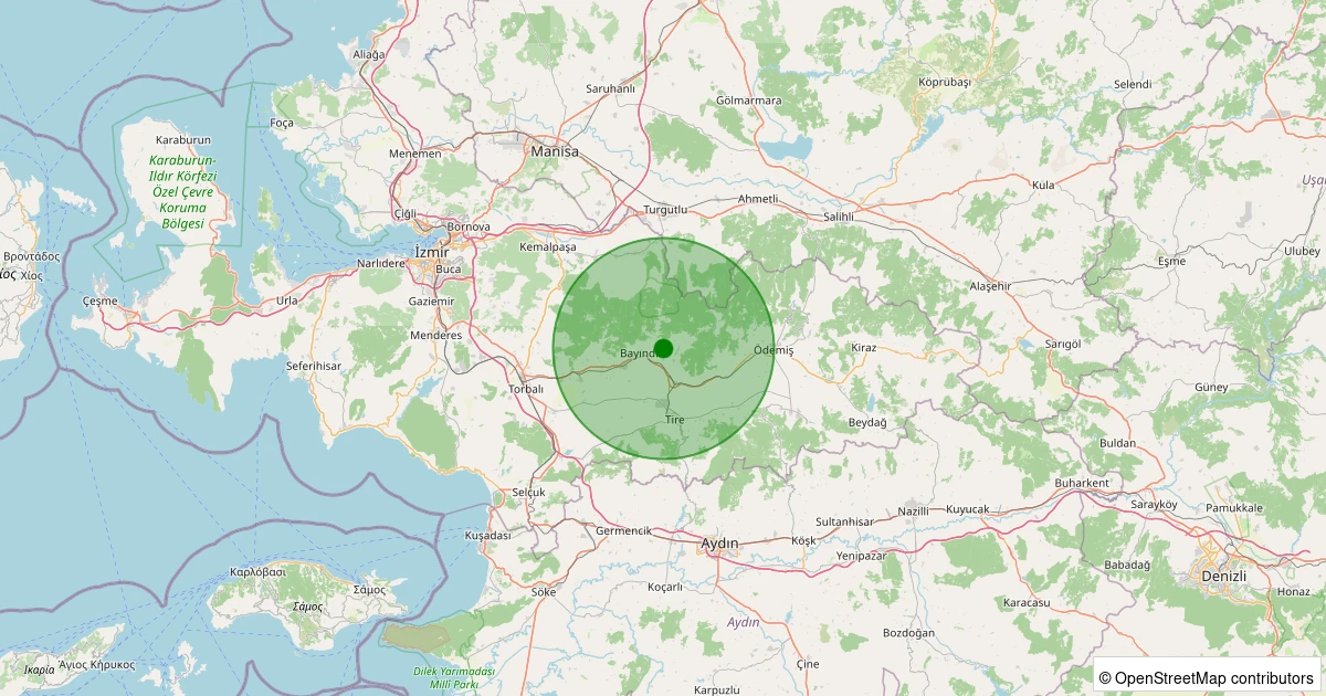 Son 7 gün içinde Bayındır - Yusuflu noktasından 100 km yarıçap içerisinde meydana gelen diğer depremler: