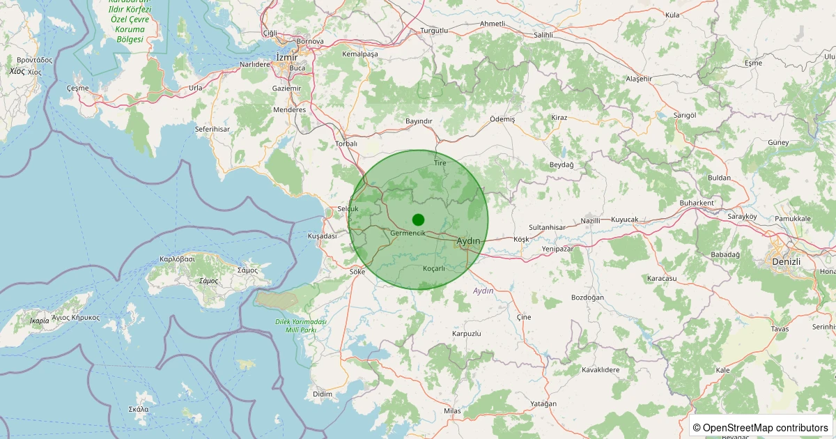 Son 7 gün içinde Germencik - Kızılcagedik noktasından 100 km yarıçap içerisinde meydana gelen diğer depremler: