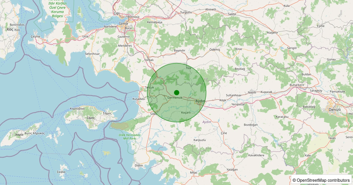 Son 7 gün içinde Germencik - Dağkaraağaç noktasından 100 km yarıçap içerisinde meydana gelen diğer depremler: