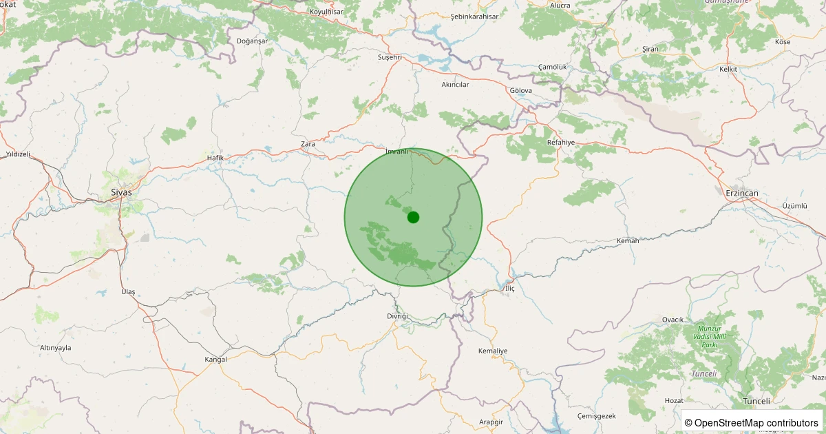 Son 7 gün içinde İmranlı - Yünören Köyü noktasından 100 km yarıçap içerisinde meydana gelen diğer depremler: