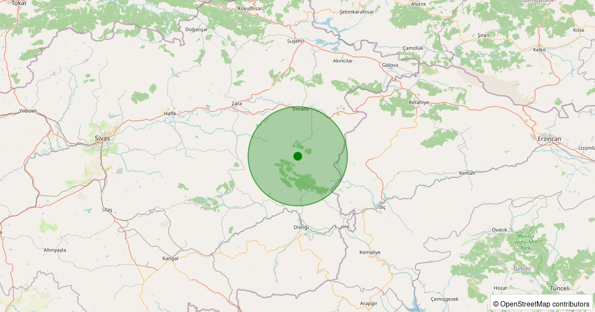 Son 7 gün içinde İmranlı - Yozyatağı Köyü noktasından 100 km yarıçap içerisinde meydana gelen diğer depremler: