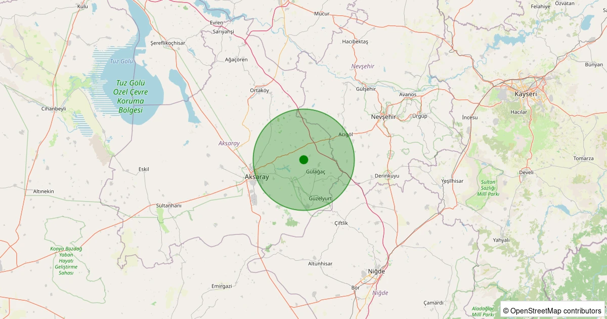 Son bir hafta içerisinde Aksaray şehri Gülağaç - Pınarbaşı Köyü noktasından 100 km yarıçap içerisinde toplamda 1 deprem kaydedilmiştir. Bu depremlerden en büyüğü 1.1 büyüklüğünde ve en sığ odaklısı 7.00 kilometre derinlikte gerçekleşmiştir.