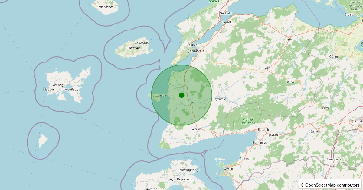 Son 7 gün içinde Ezine - Mecidiye Köyü noktasından 100 km yarıçap içerisinde meydana gelen diğer depremler: