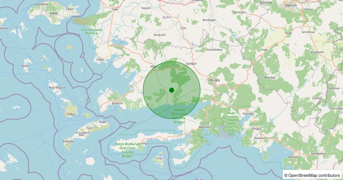 Son 7 gün içinde Milas - Yoğunoluk noktasından 100 km yarıçap içerisinde meydana gelen diğer depremler: