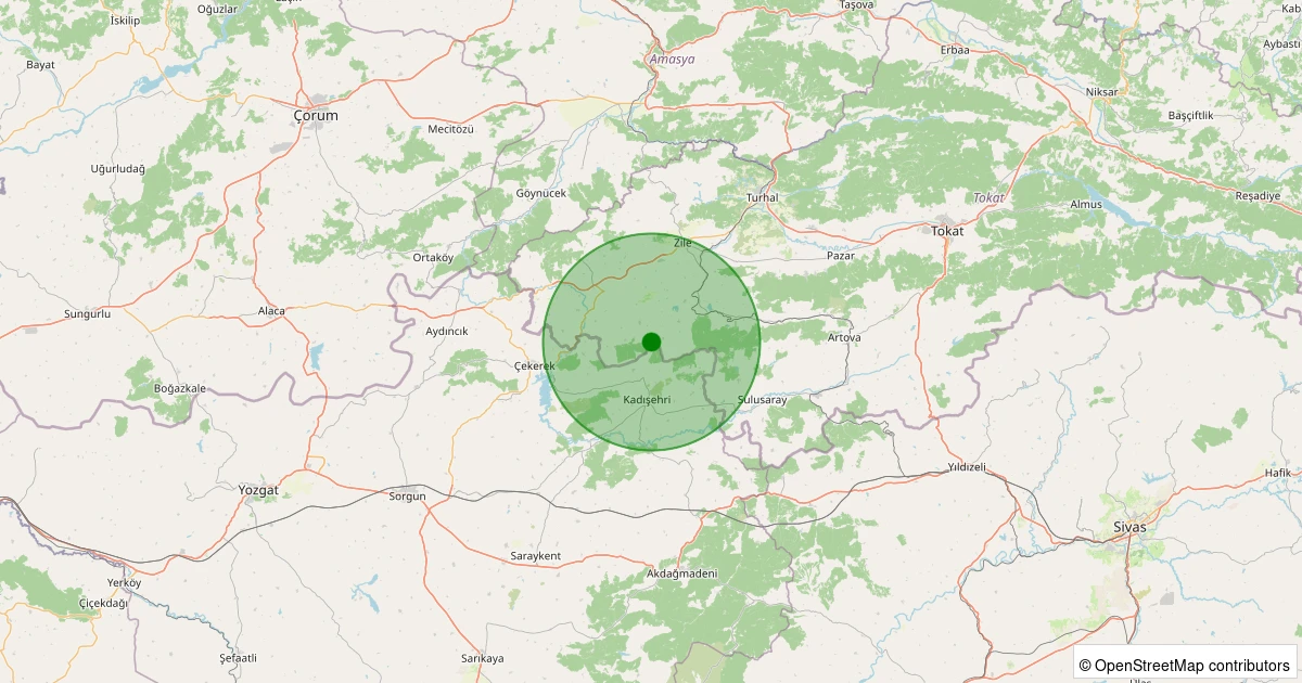 Son 7 gün içinde Zile - Aluçözü Köyü noktasından 100 km yarıçap içerisinde meydana gelen diğer depremler: