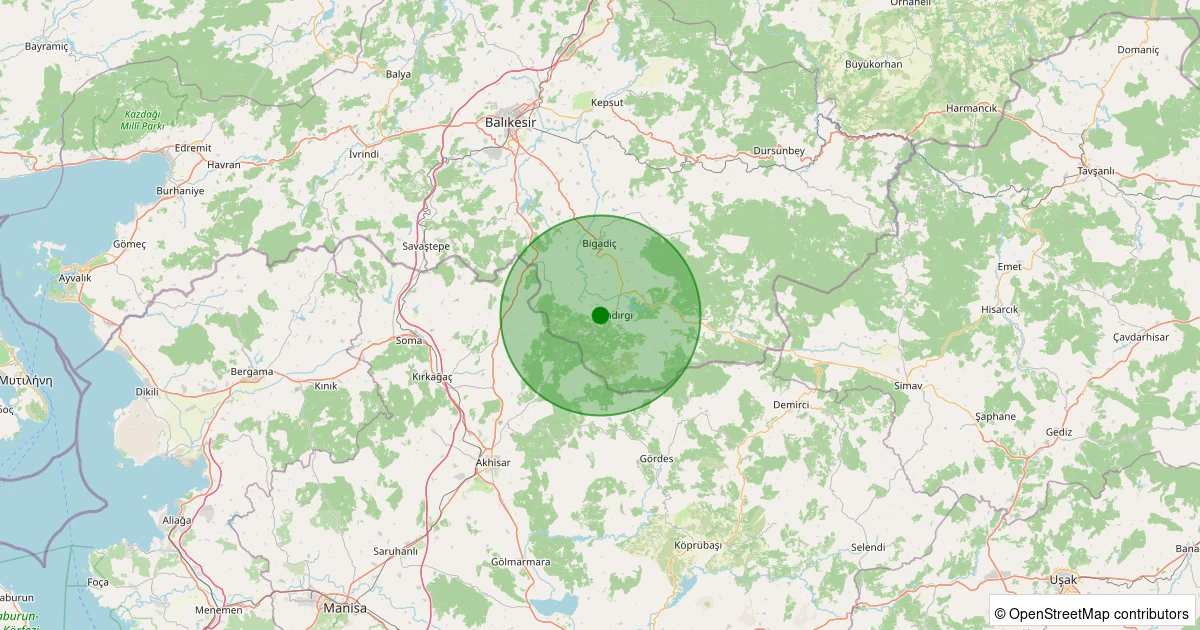 Son 7 gün içinde Sındırgı - Mandıra noktasından 100 km yarıçap içerisinde meydana gelen diğer depremler: