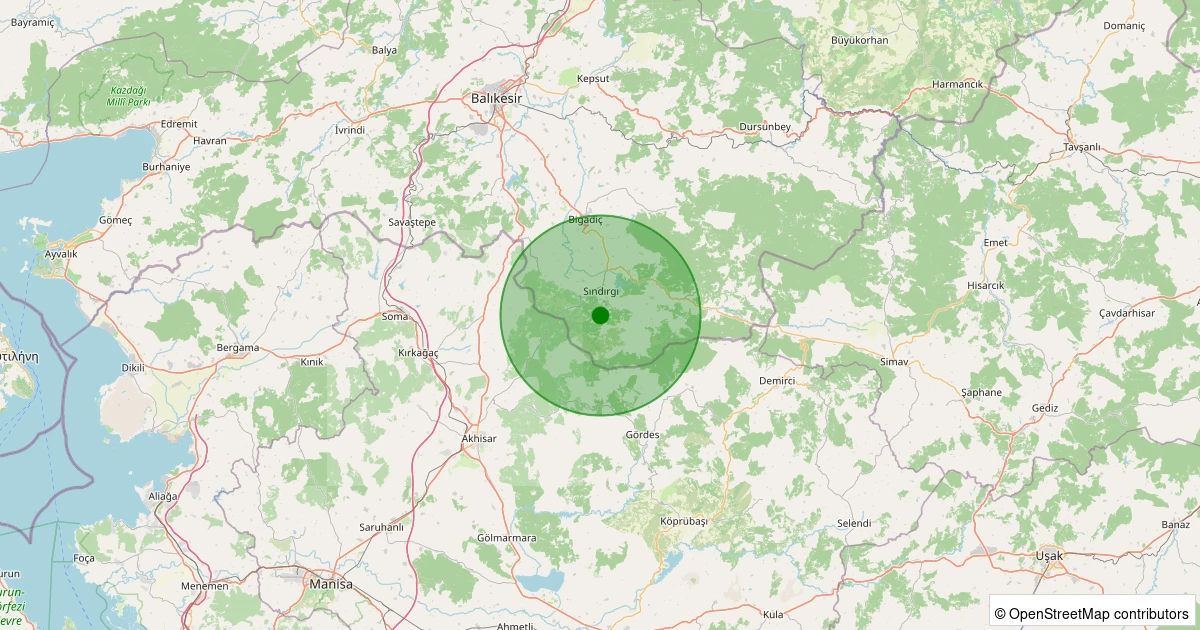 Son 7 gün içinde Sındırgı - Yaylacık noktasından 100 km yarıçap içerisinde meydana gelen diğer depremler: