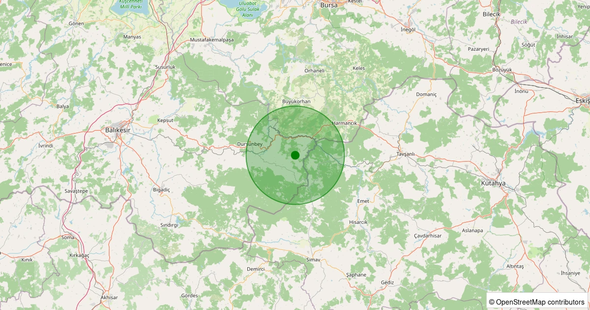 Son 7 gün içinde Dursunbey - Alagüney noktasından 100 km yarıçap içerisinde meydana gelen diğer depremler: