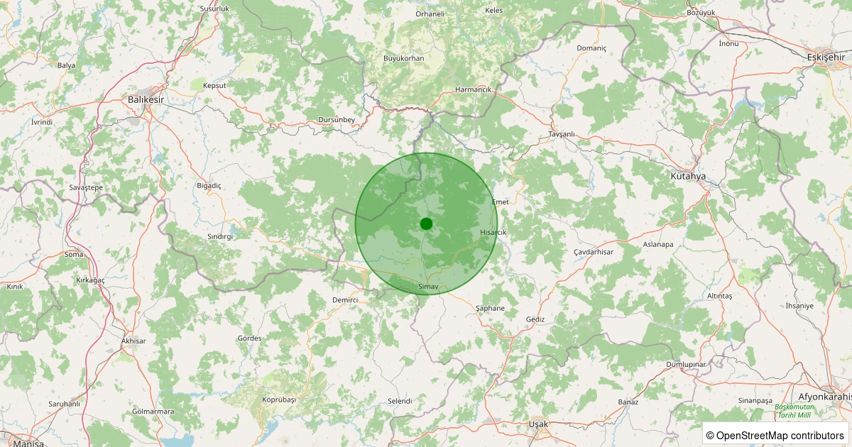 EMSC üzerinden alınan ölçümlere göre Simav - Yeşildere Köyü bölgesinde 11.04.2026 20:04 tarihinde gece saatlerinde 1.1 büyüklüğünde bir deprem meydana geldi.