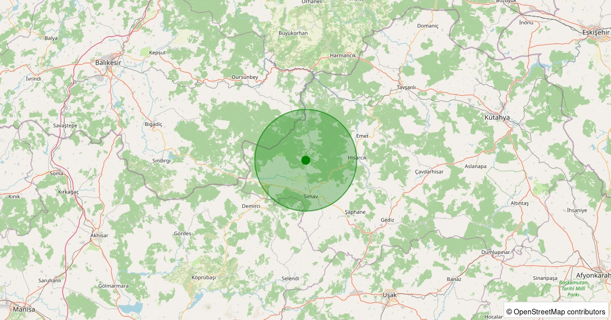 Son 7 gün içinde Simav - Yeniler Köyü noktasından 100 km yarıçap içerisinde meydana gelen diğer depremler: