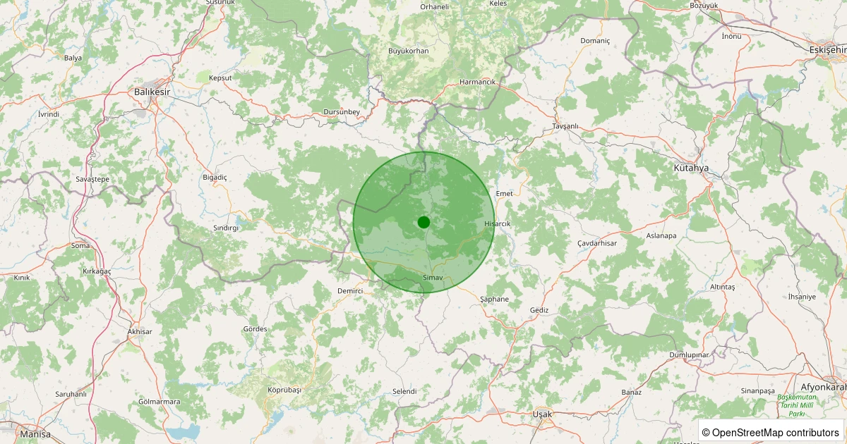 Son 7 gün içinde Simav - Yeniler Köyü noktasından 100 km yarıçap içerisinde meydana gelen diğer depremler: