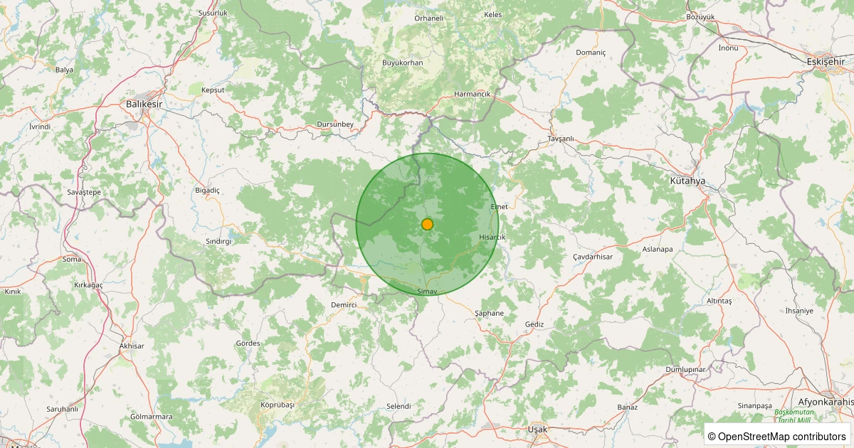 Son 7 gün içinde Simav - Eğirler Köyü noktasından 100 km yarıçap içerisinde meydana gelen diğer depremler: