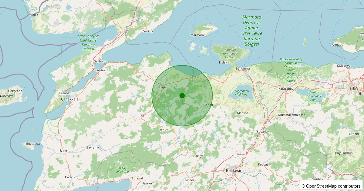 Son 7 gün içinde Gönen - Tahtalı noktasından 100 km yarıçap içerisinde meydana gelen diğer depremler: