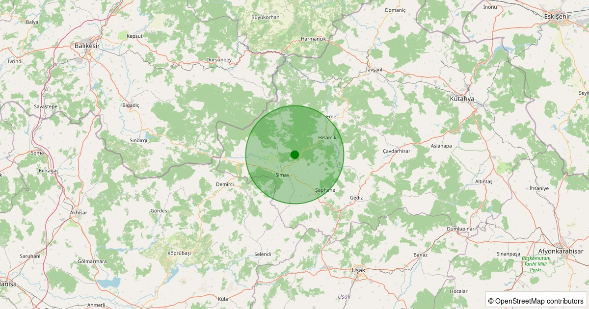 Son 7 gün içinde Simav - Karacaören Köyü noktasından 100 km yarıçap içerisinde meydana gelen diğer depremler: