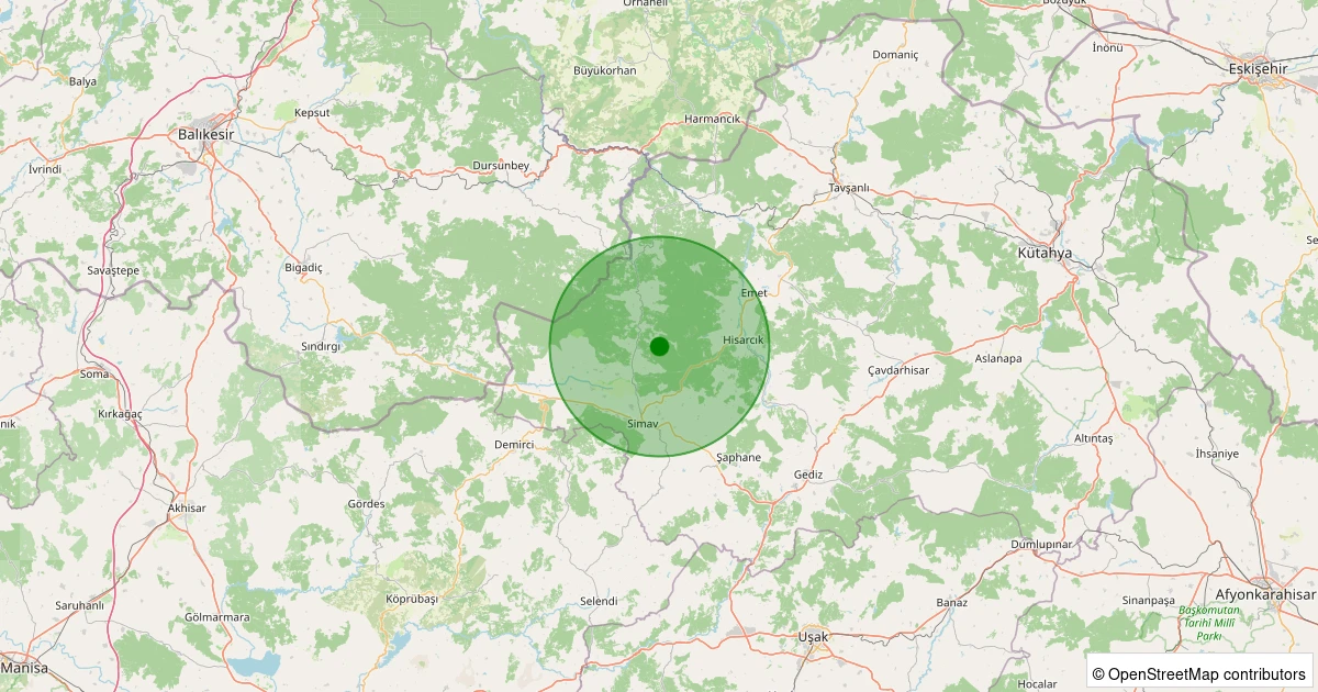 Son 7 gün içinde Simav - Yemişli Köyü noktasından 100 km yarıçap içerisinde meydana gelen diğer depremler: