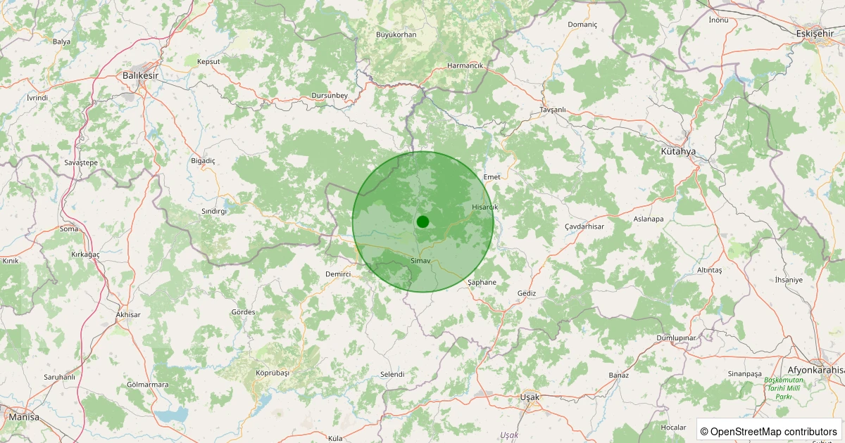 Son 7 gün içinde Simav - Eğirler Köyü noktasından 100 km yarıçap içerisinde meydana gelen diğer depremler: