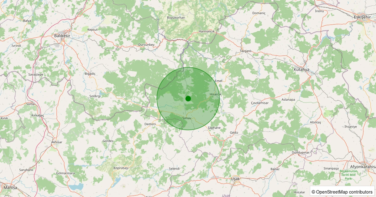 Son 7 gün içinde Simav - Yemişli Köyü noktasından 100 km yarıçap içerisinde meydana gelen diğer depremler: