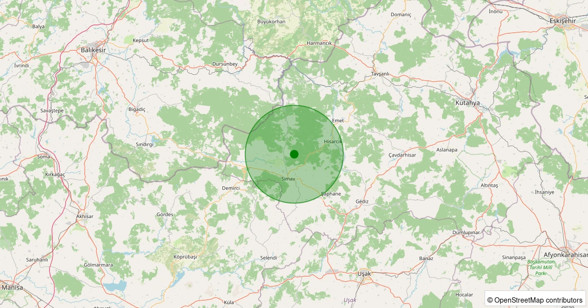 Son 7 gün içinde Simav - Eğirler Köyü noktasından 100 km yarıçap içerisinde meydana gelen diğer depremler:
