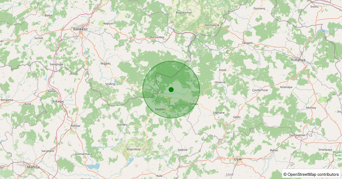 Son 7 gün içinde Simav - Kusumlar Köyü noktasından 100 km yarıçap içerisinde meydana gelen diğer depremler: