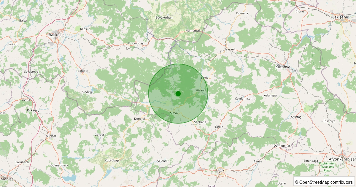 Son 7 gün içinde Simav - Yemişli Köyü noktasından 100 km yarıçap içerisinde meydana gelen diğer depremler: