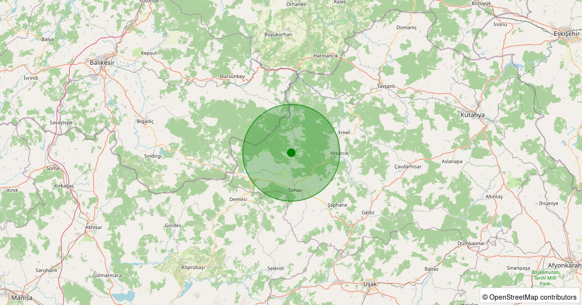 Son 7 gün içinde Simav - Karakoca Köyü noktasından 100 km yarıçap içerisinde meydana gelen diğer depremler: