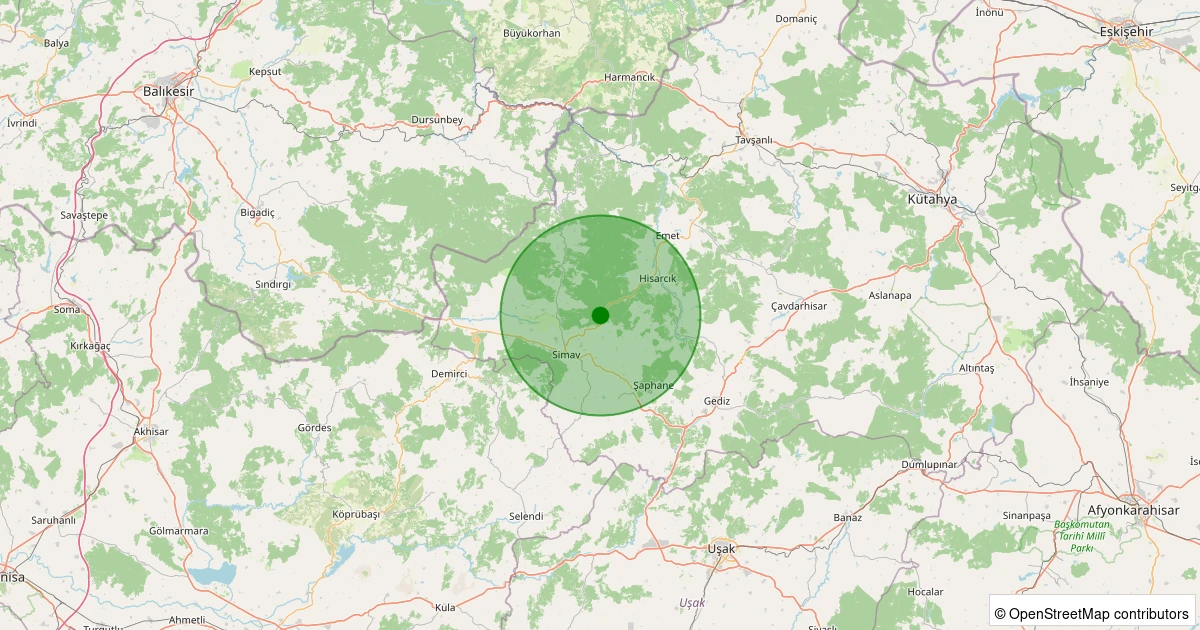 Son 7 gün içinde Simav - Söğüt Köyü noktasından 100 km yarıçap içerisinde meydana gelen diğer depremler: