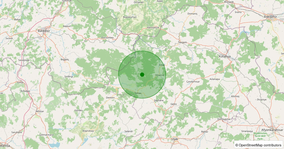Son 7 gün içinde Simav - Yeşildere Köyü noktasından 100 km yarıçap içerisinde meydana gelen diğer depremler: