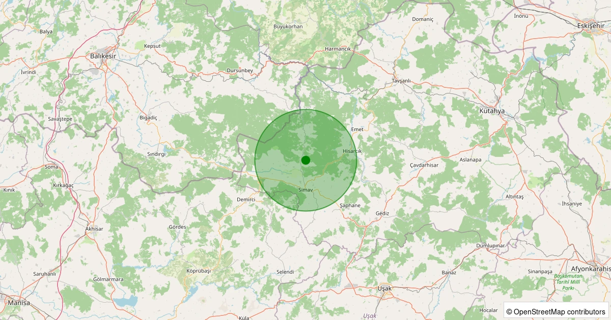 Son 7 gün içinde Simav - Yemişli Köyü noktasından 100 km yarıçap içerisinde meydana gelen diğer depremler: