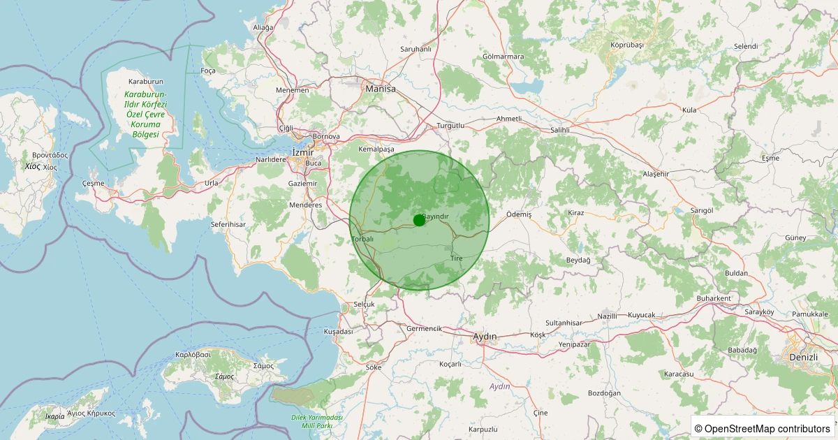 Son 7 gün içinde Bayındır - Elifli noktasından 100 km yarıçap içerisinde meydana gelen diğer depremler: