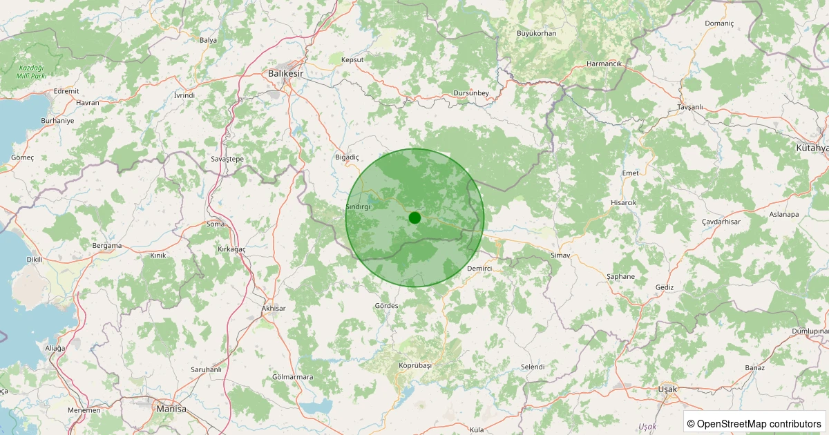Son 7 gün içinde Sındırgı - Çıkrıkçı noktasından 100 km yarıçap içerisinde meydana gelen diğer depremler: