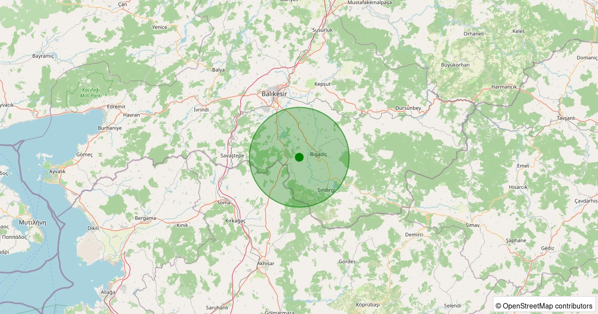 Son bir hafta içerisinde Balıkesir şehri Bigadiç - Çekirdekli noktasından 100 km yarıçap içerisinde toplamda 1157 deprem kaydedilmiştir. Bu depremlerden en büyüğü 4.9 büyüklüğünde ve en sığ odaklısı 0.00 kilometre derinlikte gerçekleşmiştir.