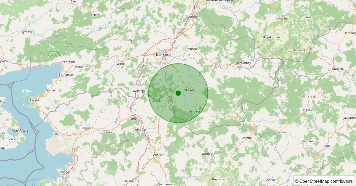 Son bir hafta içerisinde Balıkesir şehri Bigadiç - Çekirdekli noktasından 100 km yarıçap içerisinde toplamda 1155 deprem kaydedilmiştir. Bu depremlerden en büyüğü 4.9 büyüklüğünde ve en sığ odaklısı 0.00 kilometre derinlikte gerçekleşmiştir.