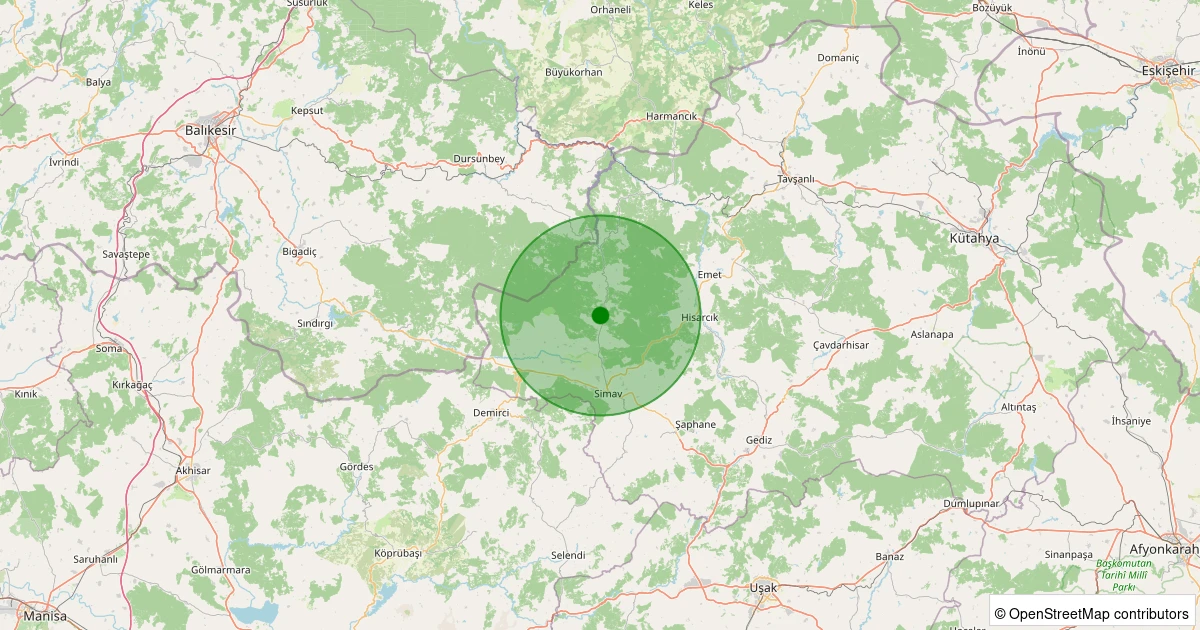 Son 7 gün içinde Simav - Karakoca Köyü noktasından 100 km yarıçap içerisinde meydana gelen diğer depremler: