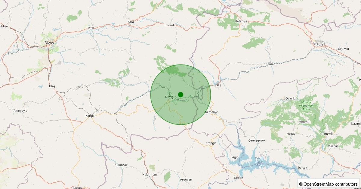 Son 7 gün içinde Divriği - Oyuktepe Köyü noktasından 100 km yarıçap içerisinde meydana gelen diğer depremler: