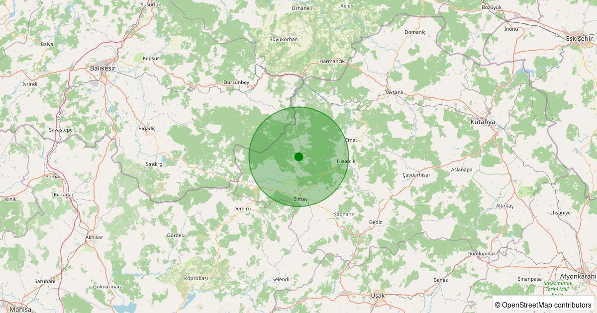 Son 7 gün içinde Simav - Yeşildere Köyü noktasından 100 km yarıçap içerisinde meydana gelen diğer depremler: