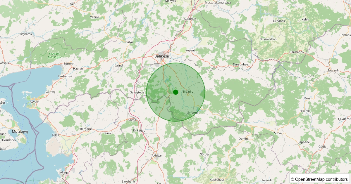 Son bir hafta içerisinde Balıkesir şehri Bigadiç - Çekirdekli noktasından 100 km yarıçap içerisinde toplamda 1159 deprem kaydedilmiştir. Bu depremlerden en büyüğü 4.9 büyüklüğünde ve en sığ odaklısı 0.00 kilometre derinlikte gerçekleşmiştir.