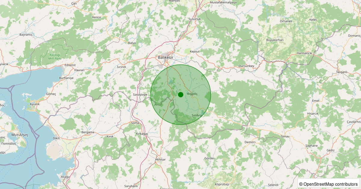 Son bir hafta içerisinde Balıkesir şehri Bigadiç - Çekirdekli noktasından 100 km yarıçap içerisinde toplamda 1162 deprem kaydedilmiştir. Bu depremlerden en büyüğü 4.9 büyüklüğünde ve en sığ odaklısı 0.00 kilometre derinlikte gerçekleşmiştir.