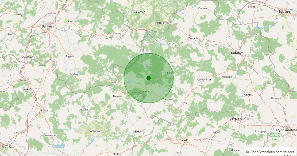 Son 7 gün içinde Simav - Eğirler Köyü noktasından 100 km yarıçap içerisinde meydana gelen diğer depremler: