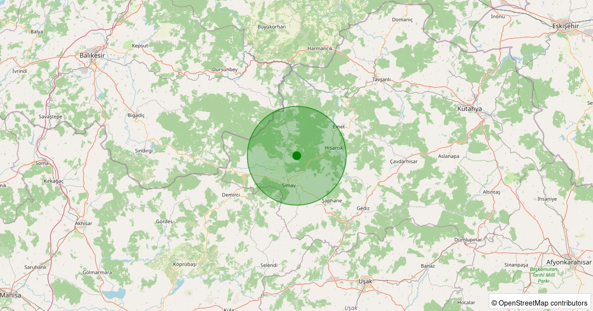 Son 7 gün içinde Simav - Yemişli Köyü noktasından 100 km yarıçap içerisinde meydana gelen diğer depremler:
