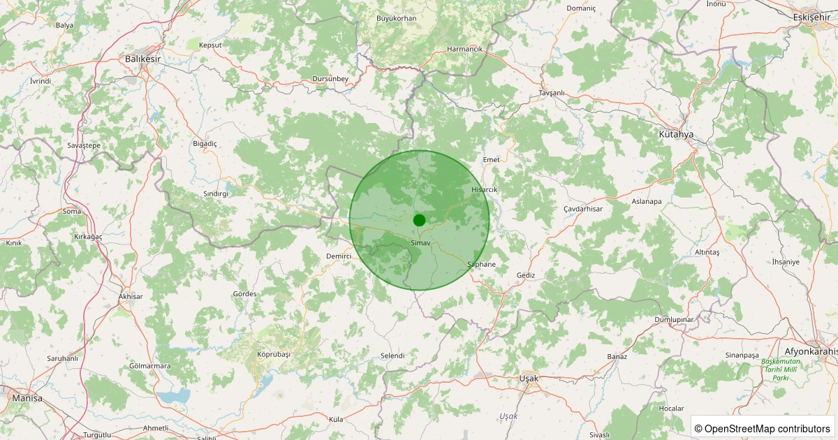 Son 7 gün içinde Simav - Naşa/Fatih noktasından 100 km yarıçap içerisinde meydana gelen diğer depremler: