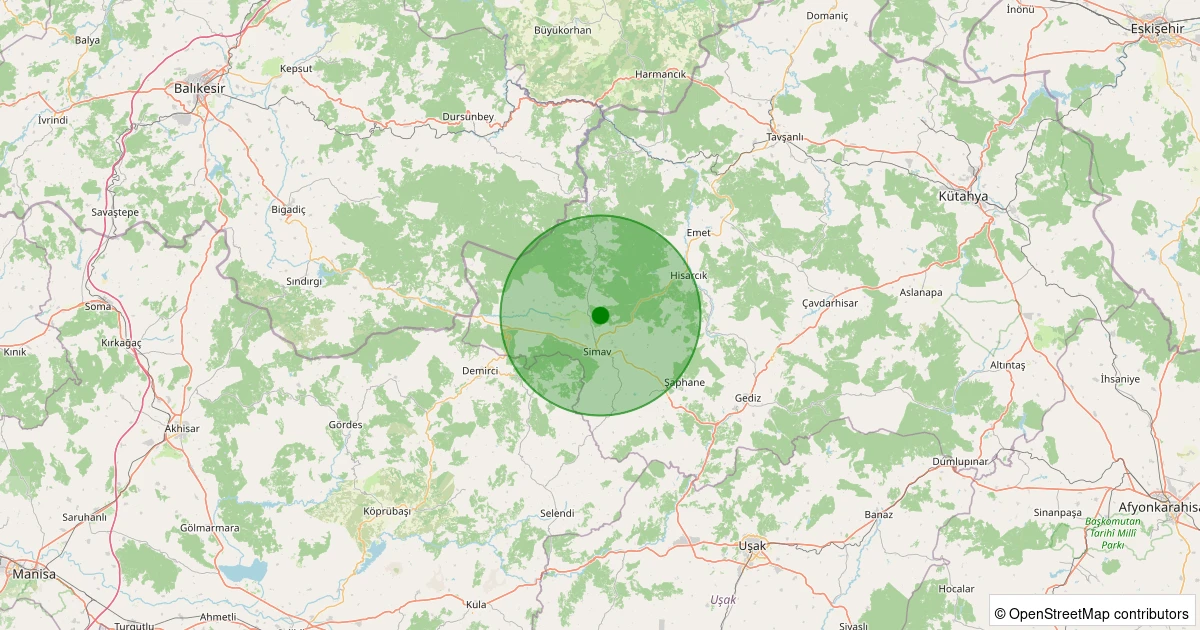Son 7 gün içinde Simav - Naşa/Fatih noktasından 100 km yarıçap içerisinde meydana gelen diğer depremler: