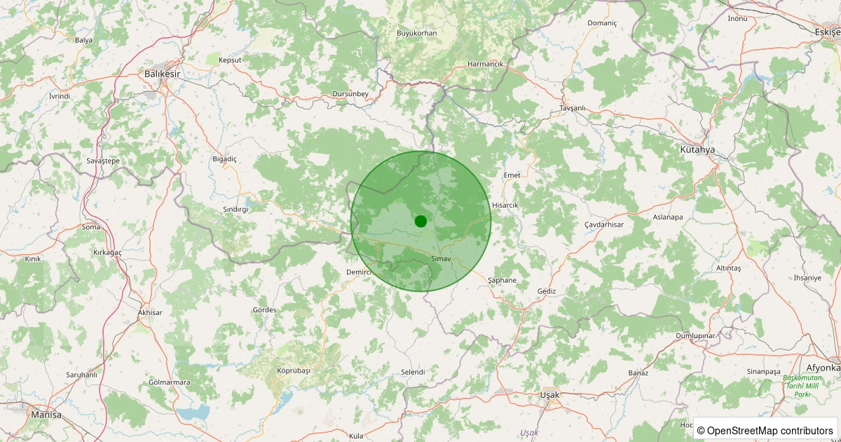 Son 7 gün içinde Simav - Örenli Köyü noktasından 100 km yarıçap içerisinde meydana gelen diğer depremler: