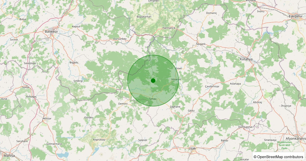 Son 7 gün içinde Simav - Yemişli Köyü noktasından 100 km yarıçap içerisinde meydana gelen diğer depremler:
