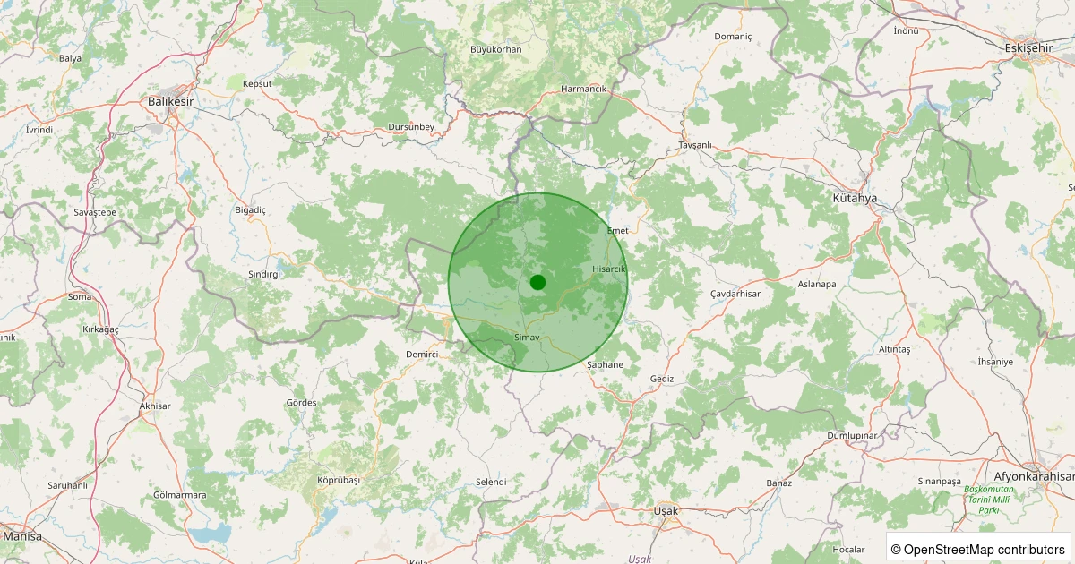 Son 7 gün içinde Simav - Yemişli Köyü noktasından 100 km yarıçap içerisinde meydana gelen diğer depremler: