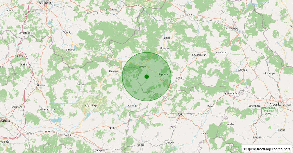 Son 7 gün içinde Simav - Kuşu Köyü noktasından 100 km yarıçap içerisinde meydana gelen diğer depremler: