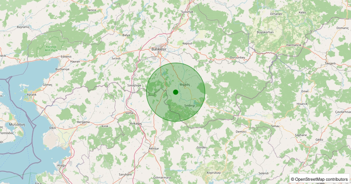 Son 7 gün içinde Sındırgı - Eşmedere noktasından 100 km yarıçap içerisinde meydana gelen diğer depremler: