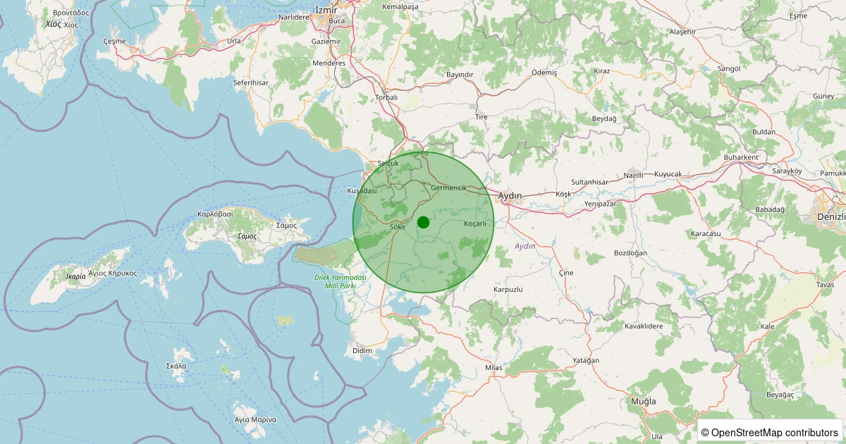 Son 7 gün içinde Koçarlı - Kasaplar noktasından 100 km yarıçap içerisinde meydana gelen diğer depremler: