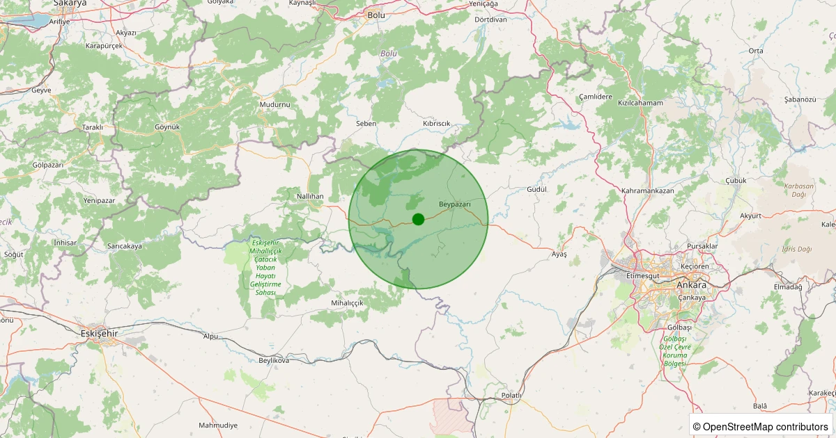 Son 7 gün içinde Beypazarı - Kuyucak noktasından 100 km yarıçap içerisinde meydana gelen diğer depremler: